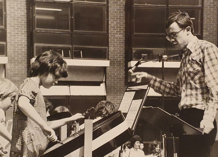 school band and with his guidance and support, gradually developed the skills to arrange